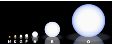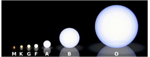 Во сколько раз звезда спектрального класса O, изображённая на рисунке, больше звезды класса B? Ответ округлите до целых.