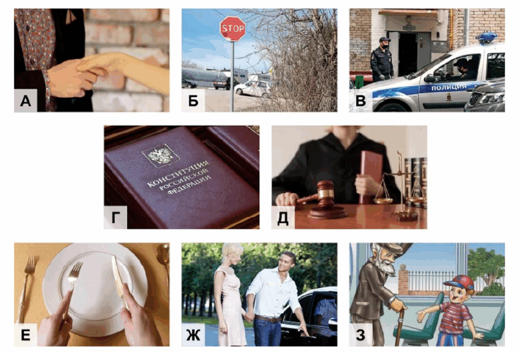 Задание 9. Из приведённых ниже изображений выберите те, на которых показаны моральные принципы и ценности, упомянутые автором текста.