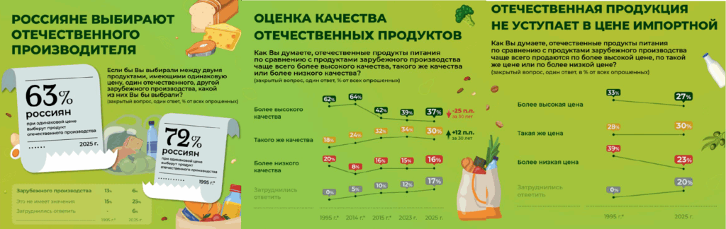 Четверть респондентов в 2025 году не видит разницы между продуктами отечественного и зарубежного производства при равной цене.