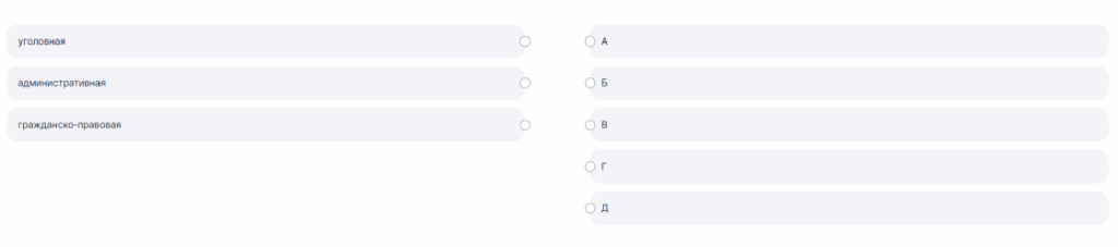 В Российской Федерации существует несколько видов юридической ответственности. Установите соответствие между ситуациями и видами ответственности, возлагаемой в соответствии с возникшими правоотношениями.