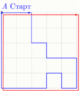 Задание 1. Петя и Вася выбежали утром на пробежку по дорожкам парка, которые разбивают его на 25 одинаковых квадратных секторов. Схема парка представлена справа. Оба начали тренировку в точке A и закончили в этой же точке. Петин маршрут показан красным цветом, а Васин синим. Каждый из них пробегал сторону одного сектора (сторону квадрата) за 1 минуту. Сколько минут Петя и Вася бежали вместе бок о бок?