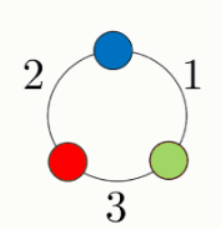 Задание 3. По кругу расположены 3 цветных шарика, как показано на рисунке: зелёный, синий и красный.