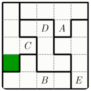 Задание 6. В каждом столбце, в каждой строке и в каждой выделенной фигуре таблицы должно быть по одной букве A, B, C, D, E. Таблицу заполнили частично.