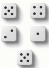 Задание 2. На стол бросили пять игральных кубиков. Они упали так, как показано на рисунке. На каждую грань кубика нанесены от 1 до 6 точек. Можно несколько раз проделать следующую операцию: выбрать любой кубик и перевернуть его произвольным образом так, чтобы чётность числа на верхней грани не изменилась. Какую сумму чисел на верхних гранях можно получить? Выберите все подходящие варианты: