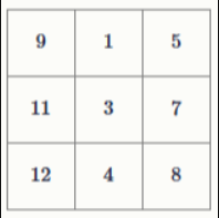 Задание 3. Назовём горизонталь, вертикаль или одну из двух главных диагоналей квадрата рядом. В квадрате 3×3 расставили числа так, что для любого его ряда верно, что число, расположенное в его середине, вдвое меньше суммы крайних чисел этого ряда. Из квадрата стёрли некоторые числа. Восстановите их.