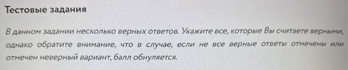 В данном задании несколько верных ответов. Укажите все, которые Вы считаете верными, однако обратите внимание, что в случае, если не все верные ответы отмечены или отмечен неверный вариант, балл обнуляется.