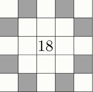 Задание 6. В квадрате 5×5 расставили натуральные числа от 1 до 25, каждое по одному разу, так, что суммы чисел в каждой строке, каждом столбце и каждой из двух диагоналей совпали. Оказалось, что в центре стоит число 18. Чему может быть равна сумма чисел в отмеченных клетках?