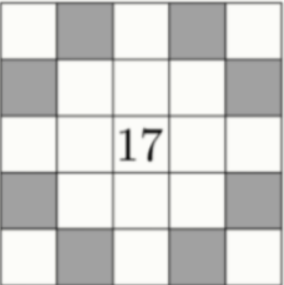 Задание 6.1 В квадрате 5×5 расставили натуральные числа от 1 до 25, каждое по одному разу, так, что суммы чисел в каждой строке, каждом столбце и каждой из двух диагоналей совпали. Оказалось, что в центре стоит число 17. Чему может быть равна сумма чисел в отмеченных клетках?