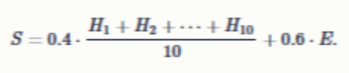 Итоговый средний балл: 40% за домашние, 60% за контрольную:
